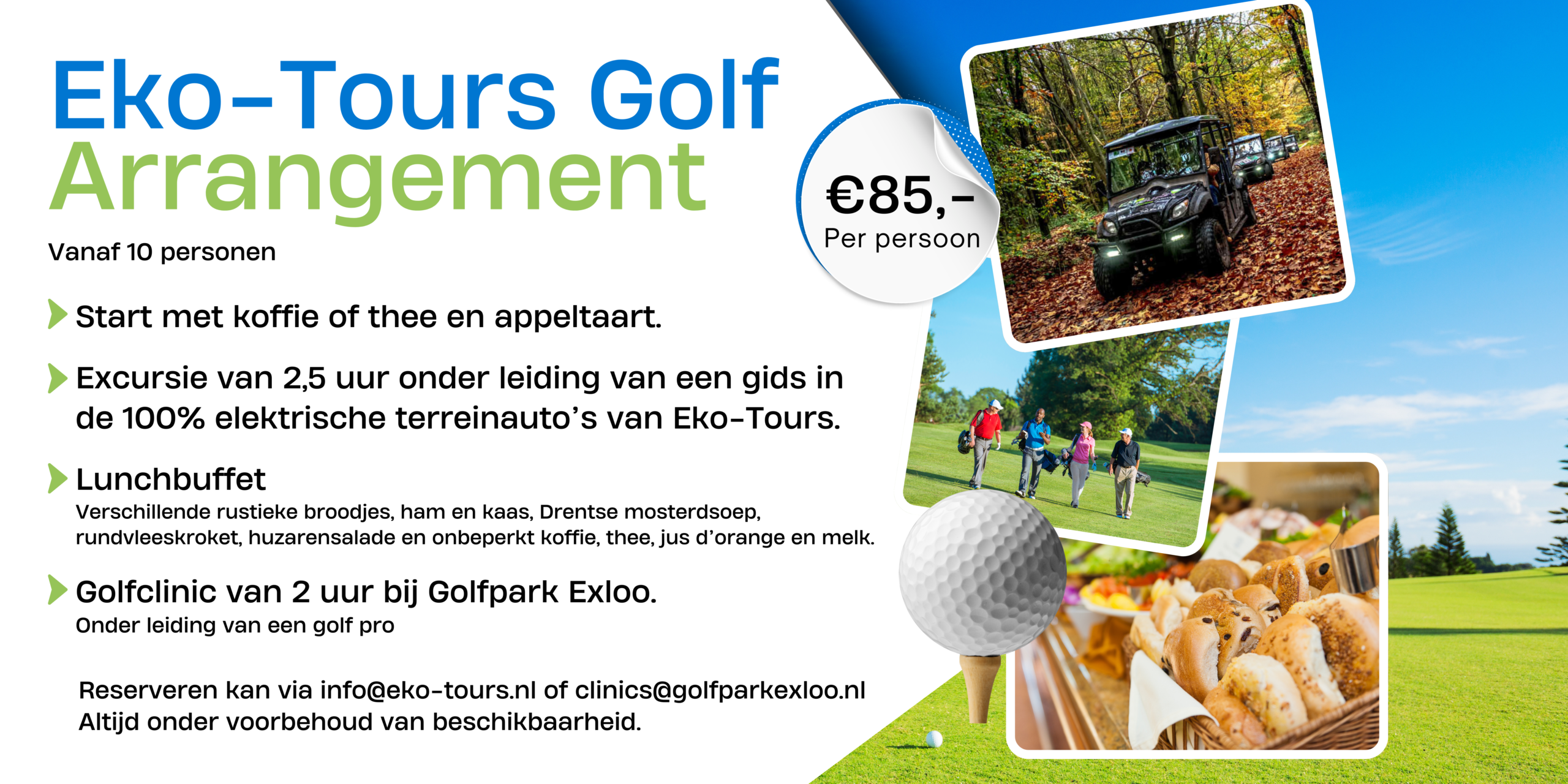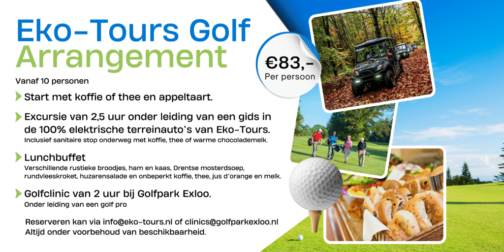 Het ’tweede deel’ na de lunch kan bestaan uit bijvoorbeeld een golfclinic op de golfbaan in Exloo of Ees, een avontuurlijke activiteit bij Joytime, een workshop bij een Zuivelboerderij, of andere leuke dingen om te doen.