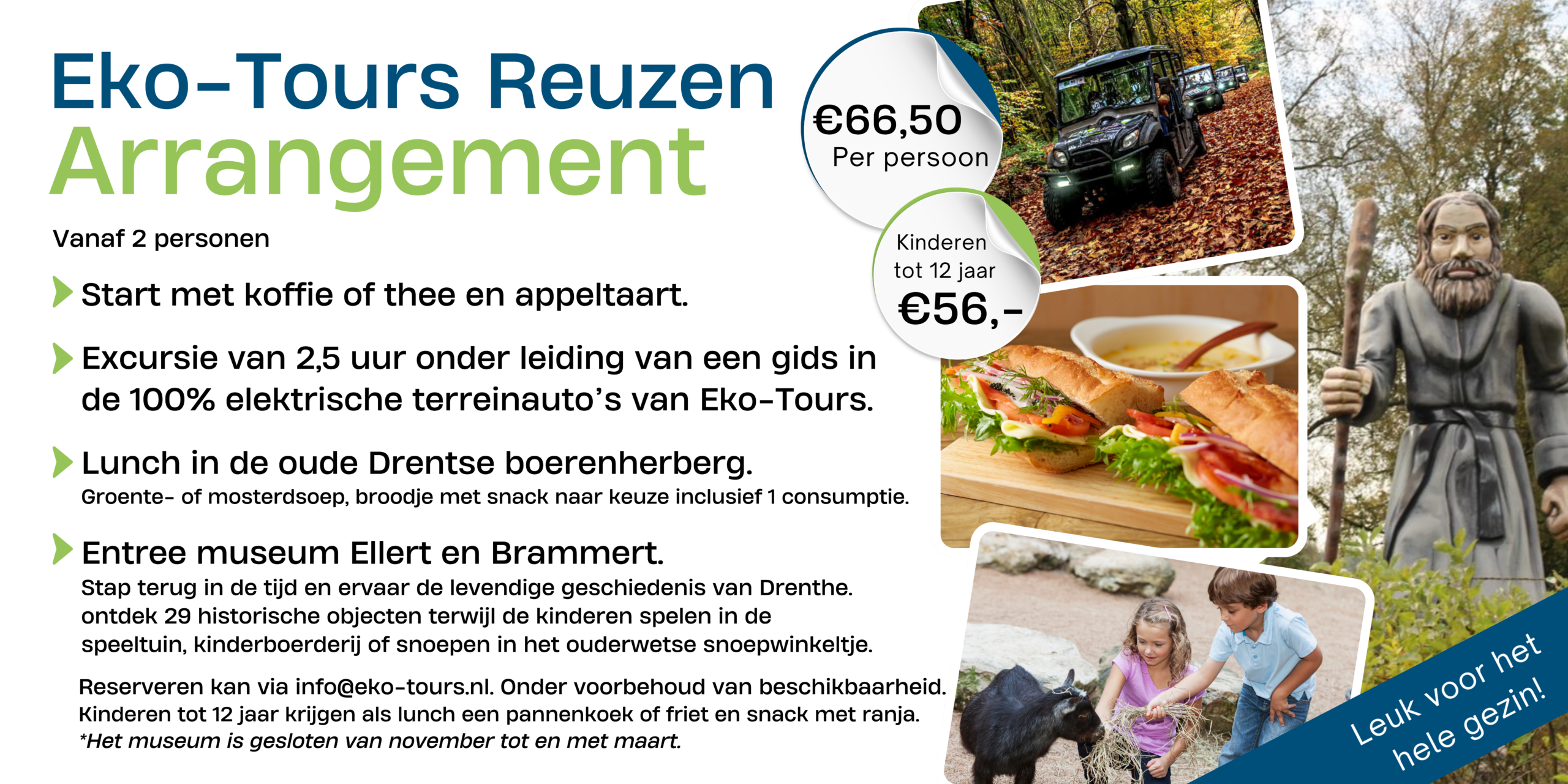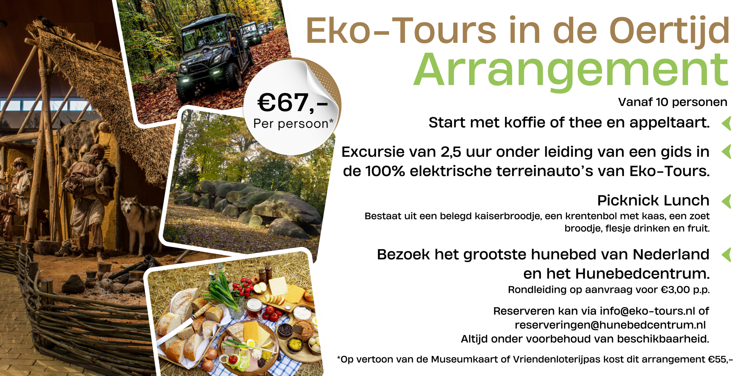 Wil je een dag-programma met een excursie of tour, lunch én andere leuke activiteit. Kijk dan hieronder voor mooie arrangementen en neem contact met ons op voor de wensen en mogelijkheden.