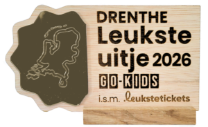 In 2026 zijn we wederom in de prijzen gevallen met de bronzen award als leukste uitje van Drenthe. Een wedstrijd die sinds dit jaar georganiseerd wordt door Go-Kids en waarbij deelnemer en jury met name kijken naar de beleving voor het hele gezin, kindvriendelijkheid en duurzaamheid. Weer een prijs om trots op te zijn !